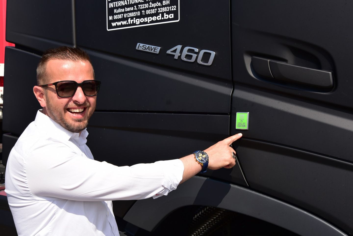 Ne može se ni sjetiti baš svakog, ali se veoma dobro sjeća svog prvog kamiona koji su kupili još 1994. godine. Vremešni Volvo F86, proizveden 20 godina ranije, godinama ih je služio bez ikakvih problema, čime je postavio temelje višedecenijskog povjerenje u Volvo brend. Dva polovna tegljača u firmu stižu 1996. godine, a prvi novi kamion Volvo već 1997. godine. Od tada do danas kroz ruke vozača ove transportne kompanije prošli su tegljači svih generacija i to isključivo Volvo, a s prvom ovogodišnjom isporukom Frigošped počinje sagu s modernim sistemom I-Save. Mustafin sin Edin, već odavno stasao za rukovodeće poslove u preduzeću, kaže da je dovoljno informisan o novoj tehnologiji i da joj u potpunosti vjeruje. Od novih kamiona očekuje priličnu uštedu, a o pouzdanosti se ne izjašnjava, jer se ona već podrazumijeva. Ponosan je na to što su predvodnici njihove flote najnoviji kamioni koji su i moćni i jedinstveni, čime će steći dodatni ugled među korisnicima njihovih transportnih usluga. Njihovi kamioni se najčešće mogu vidjeti na putevima koji vode do destinacija u Austriji, Njemačkoj, Danskoj, Belgiji, Švedskoj i Norveškoj.