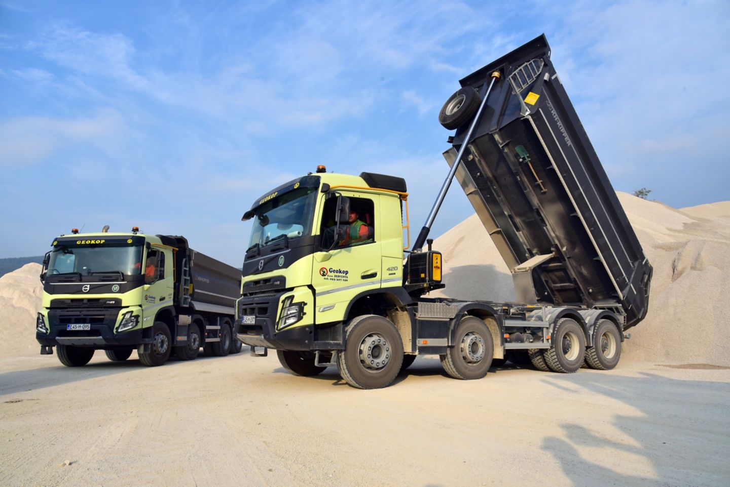 Novi Geokopovi Volvo FMX kiperi bez sumnje predstavljaju tehnološki vrh u transportu građevinskog materijala u niskogradnji, ali vrijedi spomenuti da su u njihovom voznom parku, na potpuno istim zadacima, i dva Volvova kipera FM proizvedena 2003. godine. Iako su u svojim “radnim knjižicama” zabilježili vrlo dug vozni staž, oni ne posustaju. Zajedno s novajlijama, svakog dana pouzdano i neumorno prevoze stotine tona raznog kamenog agregata, što je pravi dokaz poslovičnog švedskog kvaliteta koji već decenijama krasi Volvo kamione. Zanimljivo je i to što su “veterani” s bezmalo dvije decenije u točkovima, bili prva dva nova kamiona za koje se odlučio vlasnik Geokopa. A da su opravdali povjerenje u Volvo svjedoči što i danas izgledaju kao novi i pored izuzetno teških uslova u kojima rade. Vlasnik ih se još nije odrekao, jer kaže da nema potrebe - pouzdani su, zahvaljujući redovnom održavanju u dobroj su tehničkoj kondiciji, i dorasli su svakom povjerenom zadatku. I oni su jedan od razloga zbog kojih je danas u voznom parku 11 kamiona kipera Volvo FMX iz aktuelne i iz prethodne generacije.