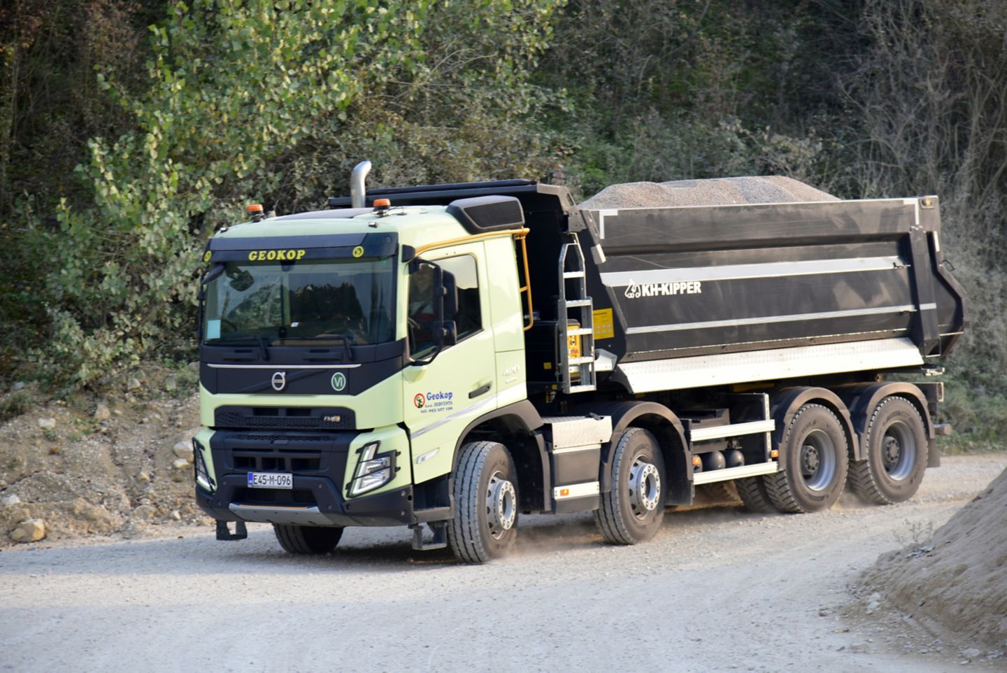 Posljednja “popuna” voznog parka bila je krajem avgusta ove godine, kada je u krug preduzeća stiglo pet potpuno novih kipera Volvo FMX 420 Euro 6. Uvjeren od ranije u njihove natprosječne sposobnosti, šef mehanizacije ove kamione obično šalje na najzahtjevnije zadatke, pa su već sutradan upućeni tamo gdje je najteže. Uigrana ekipa dobro zna njihove mogućnosti, jer su godinama unazad Volvovi kiperi prevezli milione tona materijala od kamenoloma ili od asfaltnih baza do gradilišta širom BiH. Tamo smo ih i pronašli - na jednom od kamenoloma iz kojeg su prevozili kameni agregat do gradilišta na autoputu.